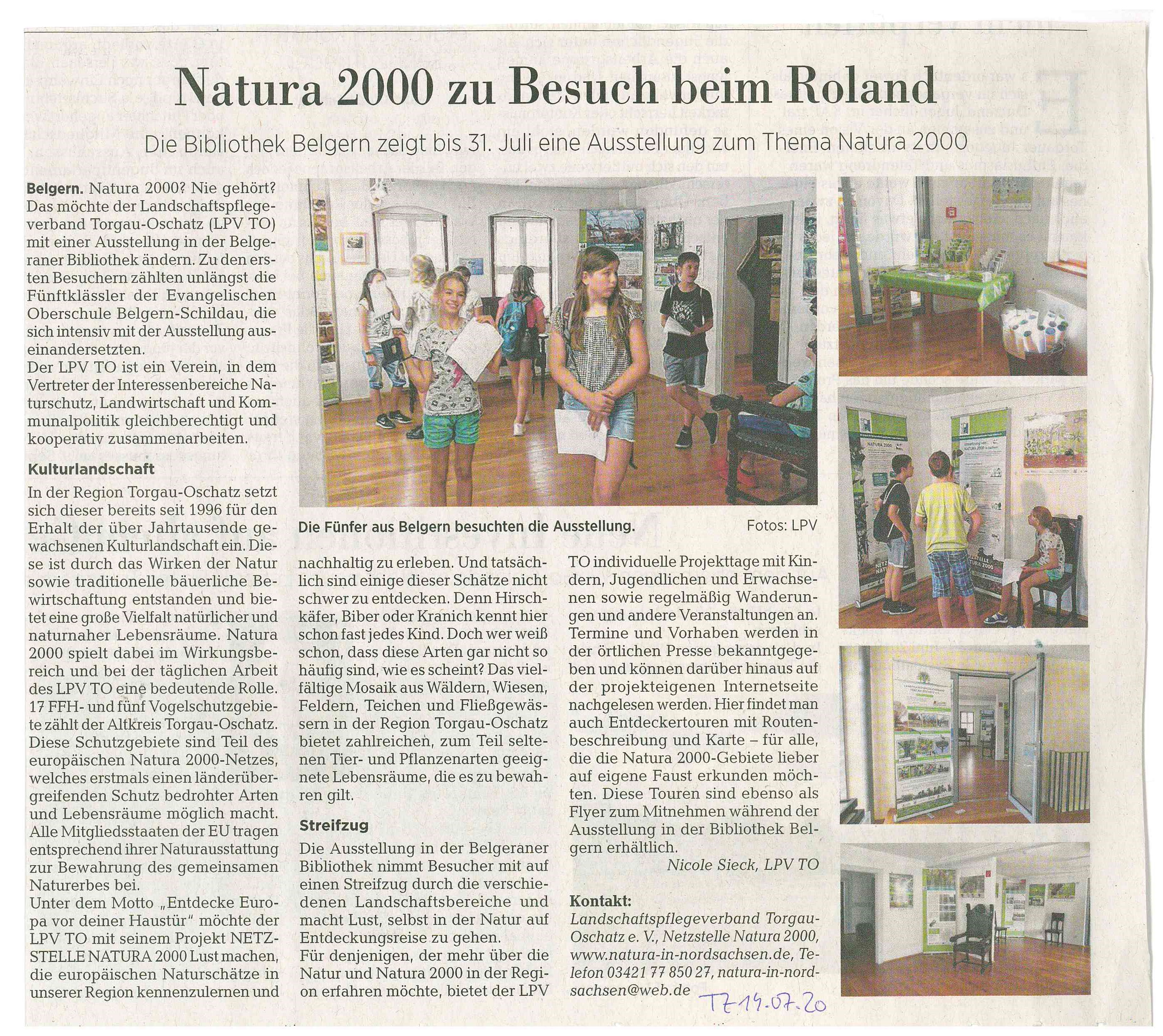 Natura 2000 zu Besuch beim Roland Im Sommer 2020 präsentierte sich die Netzstelle Natura 2000 in den Räumen der Bibliothek Belgern. Zurück Weiter