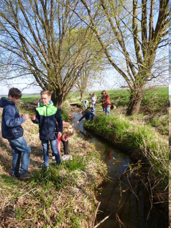 Nachdem wir uns beim letzten Mal mit dem Wald beschäftigt hatten, stand nun für die 4. Klasse der Lebensraum Gewässer auf dem Stundenplan. In der Schule machten wir uns mit den einzelnen Gewässertypen und ihren Bewohnern vertraut. Wir gingen der Frage nach, wie ein Gewässer eigentlich "aussehen" muss, damit sich viele Tiere und Pflanzen in ihm wohlfühlen. Und wir stellten fest, dass es ganz davon abhängt, wie wir Menschen mit dem Gewässer umgehen, ob es als intaktes und gesundes Ökosystem funktioniert oder nicht.