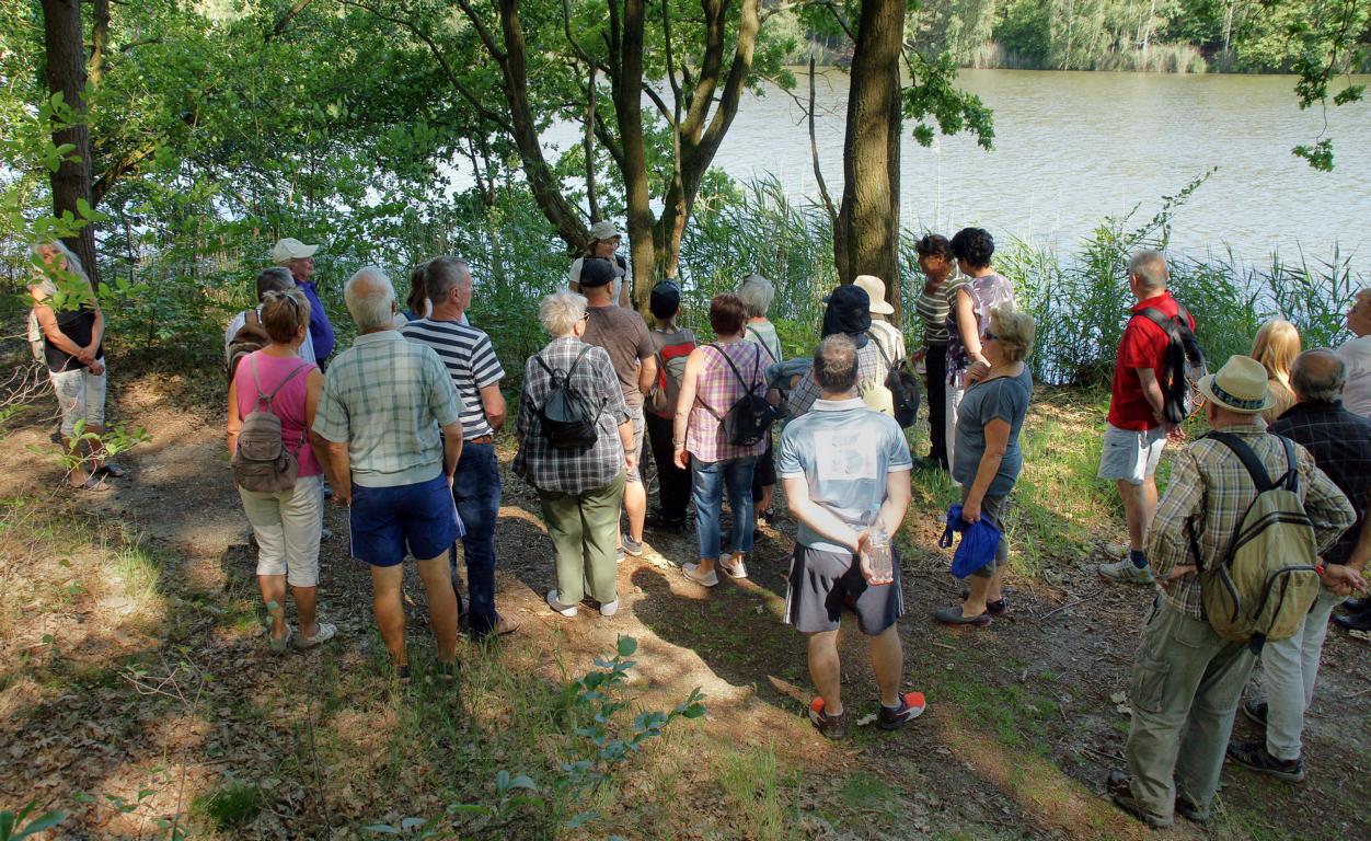 Am Sonntag, den 23. Juni 2019, lud der Landschaftspflegeverband Torgau-Oschatz e.V. (LPV TO) im Rahmen seines Projekts Netzstelle Natura 2000 wiederholt zum Natur entdecken vor unserer Haustür ein. Bei strahlendem Sonnenschein fanden sich 30 Interessierte aus nah und fern am Dahlenberger Stausee ein. Das kühle Nass lockte, doch vorher wollte der Naturlehrpfad rund um den Stausee und den Dahlenberger Dorfteich erkundet werden. Beide Gewässer reihen sich ein in das FFH-Gebiet „Dommitzscher Grenzbachgebiet“. Dieses stellt eine wichtige Verbindungsachse zwischen der Elbe und der Dübener Heide, bis hin zur Mulde dar. Alt- und totholzreiche Wälder, höhlenreiche Einzelbäume, strukturreiche Waldsäume, Teiche mit Röhrichten und Verlandungszonen sowie naturnahe Bachläufe und Bachabschnitte bieten hier zahlreichen Arten einen wertvollen Lebensraum.